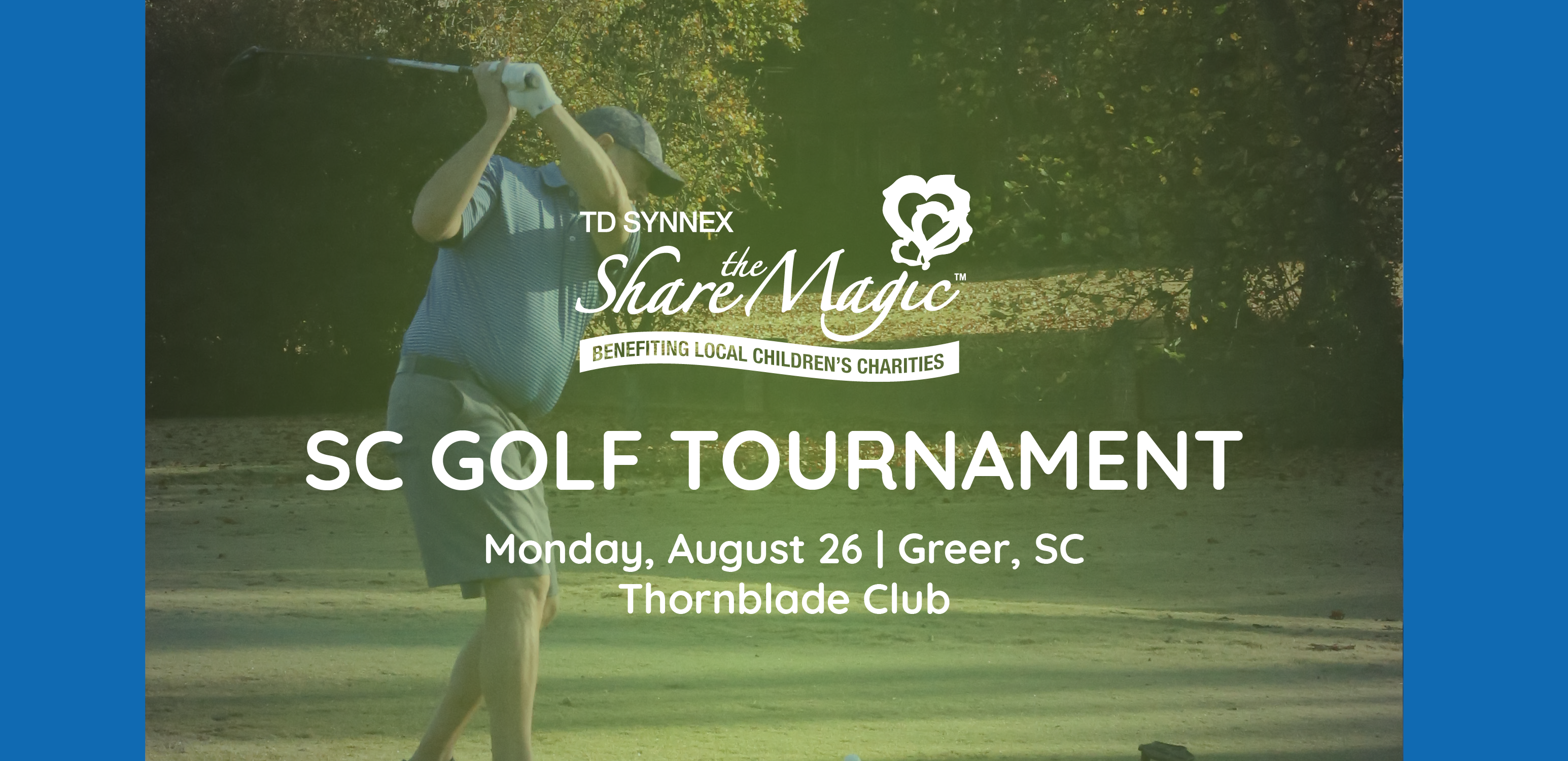 Join TD SYNNEX associates, vendors, partners and community friends at the annual TD SYNNEX Share the Magic South Carolina Golf Tournament at Thornblade Club for a day of golf, networking and fun supporting A Child’s Haven, Clement’s Kindness, Make-A-Wish South Carolina and Pendleton Place.